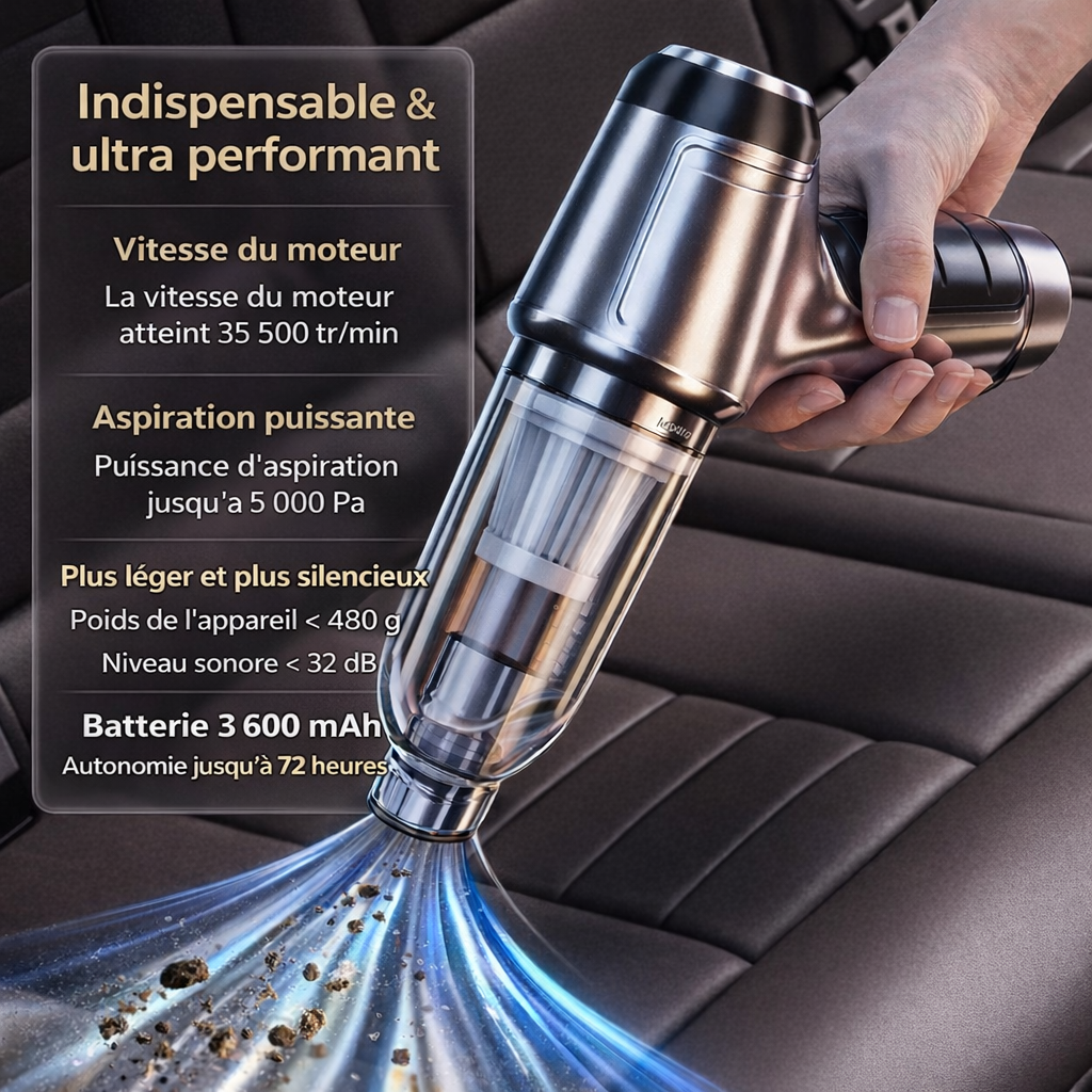 Son petit format n’est pas une contrainte, mais un véritable avantage pour un nettoyage précis et rapide, aussi bien en voiture qu’à la maison.